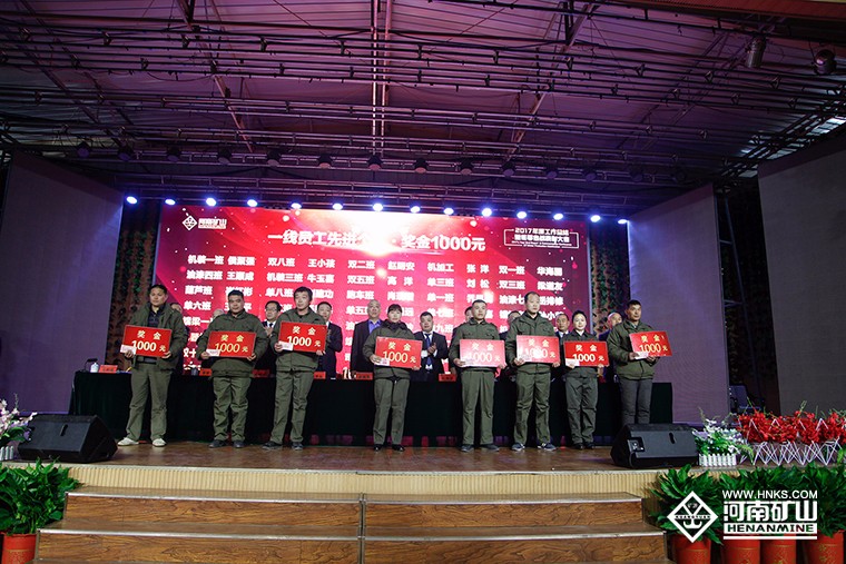 大會在莊嚴(yán)的國歌聲中正式開始。董事長魏學(xué)明發(fā)表熱情洋溢的新年致辭,他向一年來辛苦奮戰(zhàn)在生產(chǎn)一線的廣大工友及家人表達(dá)了感謝之情,感謝全體員工團(tuán)結(jié)一心、共同拼搏,大家都付出了辛勤的汗水和努力!希望大家堅定信心,增強(qiáng)對公司的歸屬感和責(zé)任感。愿全體員工一如既往,精誠團(tuán)結(jié),共同拼搏,全身心投入到工作之中。按照“樹百年礦源”的愿景目標(biāo),化繁為簡,求真務(wù)實(shí),奪取2018年各項工作的新勝利!